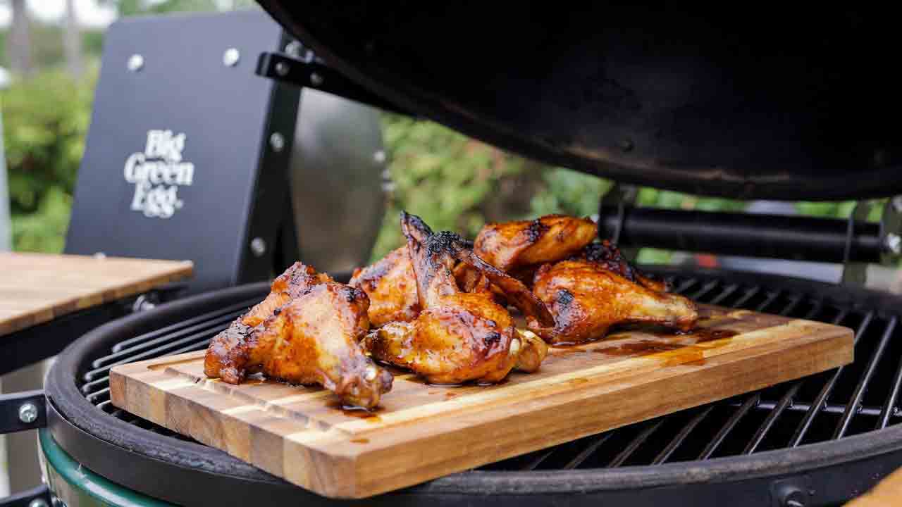 - Fire Up the Smoke (10 mins setup): Load your Big Green Egg or offset smoker with cherry wood chunks—its fruity smoke pairs like peanut butter and jelly with poultry. Stabilize at 225°F. Science note: Cherry’s phenols enhance that pink smoke ring via myoglobin stabilization. Place wings skin-up on the grate, indirect heat. Smoke for 1.5 hours, spritzing with apple cider vinegar every 30 mins to maintain 60% humidity for bark formation.